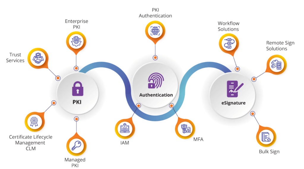 En eMudhra, ofrecemos una amplia gama de soluciones diseñadas para garantizar la seguridad y eficiencia en el mundo digital: