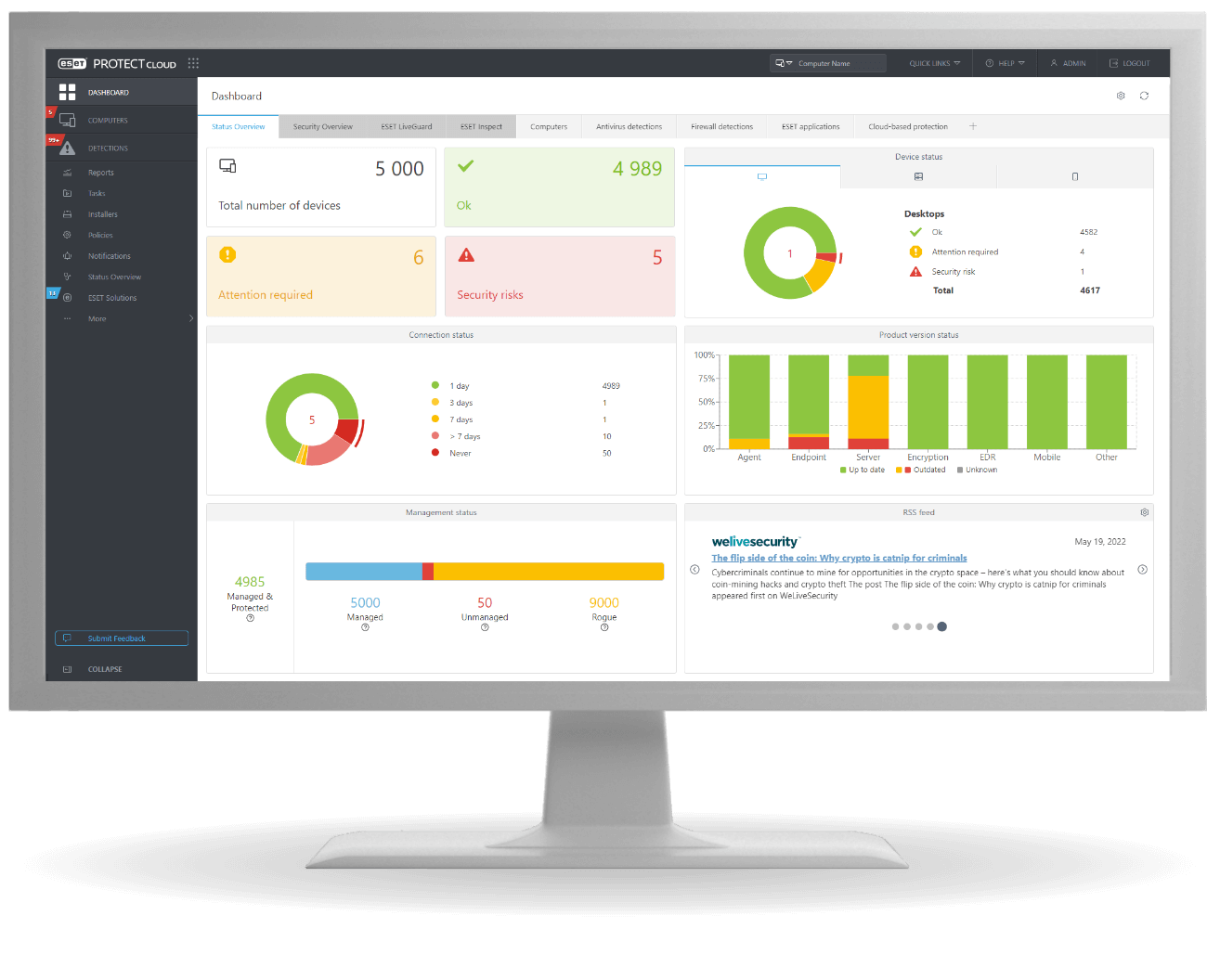 Administración remota desde una única consola, brindando visibilidad completa de amenazas, usuarios y elementos en cuarentena.
