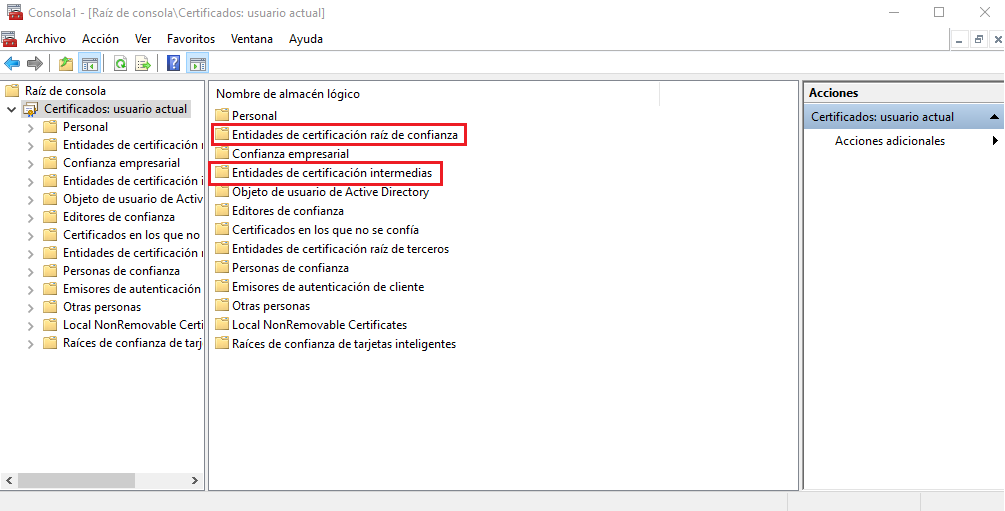 Presione Aceptar. El certificado si fue cargado con exito aparcerá en su almacén de certificados.