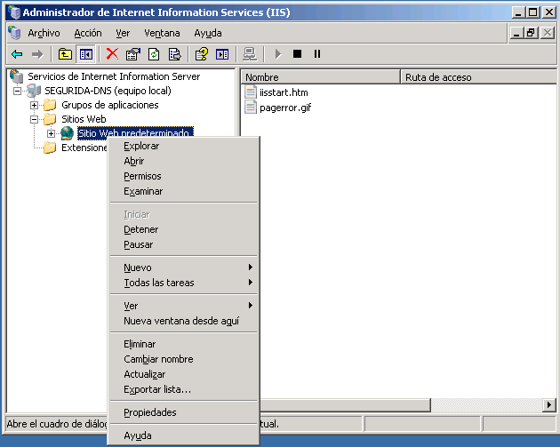 3. Con el segundo botón del mouse haga clic en el sitio, y seleccione ” Properties ”