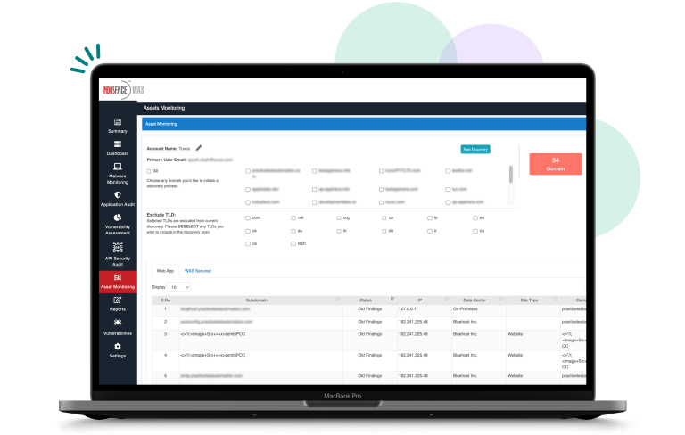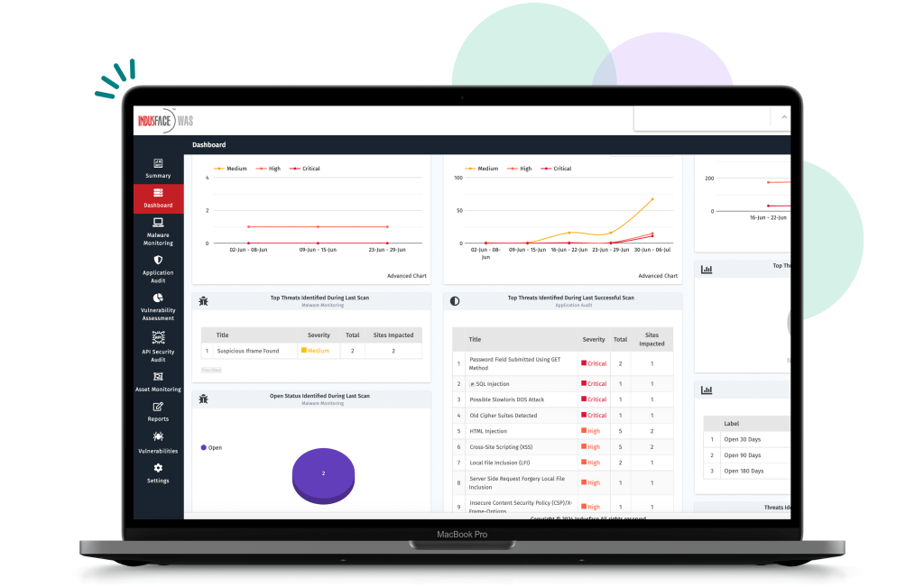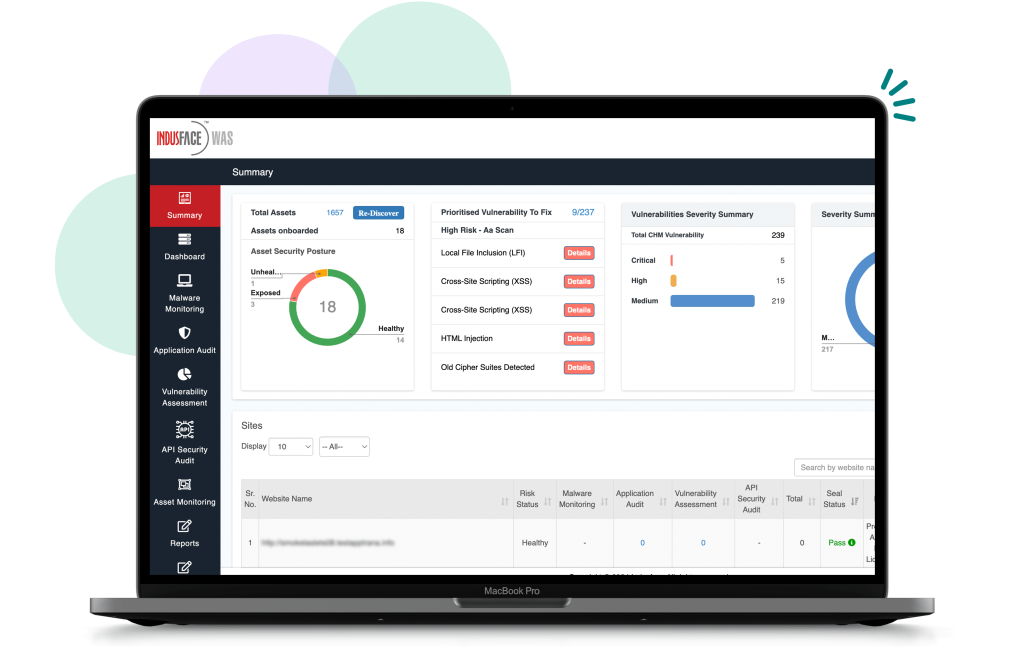 Indusface cuenta con un módulo DAST avanzado que permite identificar vulnerabilidades en aplicaciones e infraestructuras. Además, Indusface WAS incluye un escáner de malware que detecta desfiguraciones y posibles compromisos en su sitio web, garantizando una protección integral.