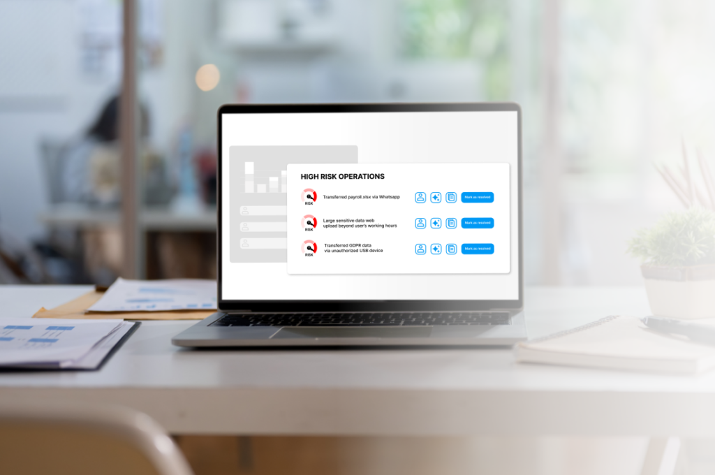 identifica y gestiona comportamientos riesgosos dentro de la organización, proporcionando alertas inteligentes y herramientas para prevenir amenazas internas y proteger tus datos críticos.